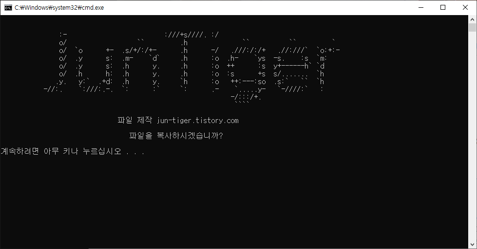 파일을 복사하시겠습니까? 문구가 나오면 엔터키를 눌러 파일을 복사합니다.