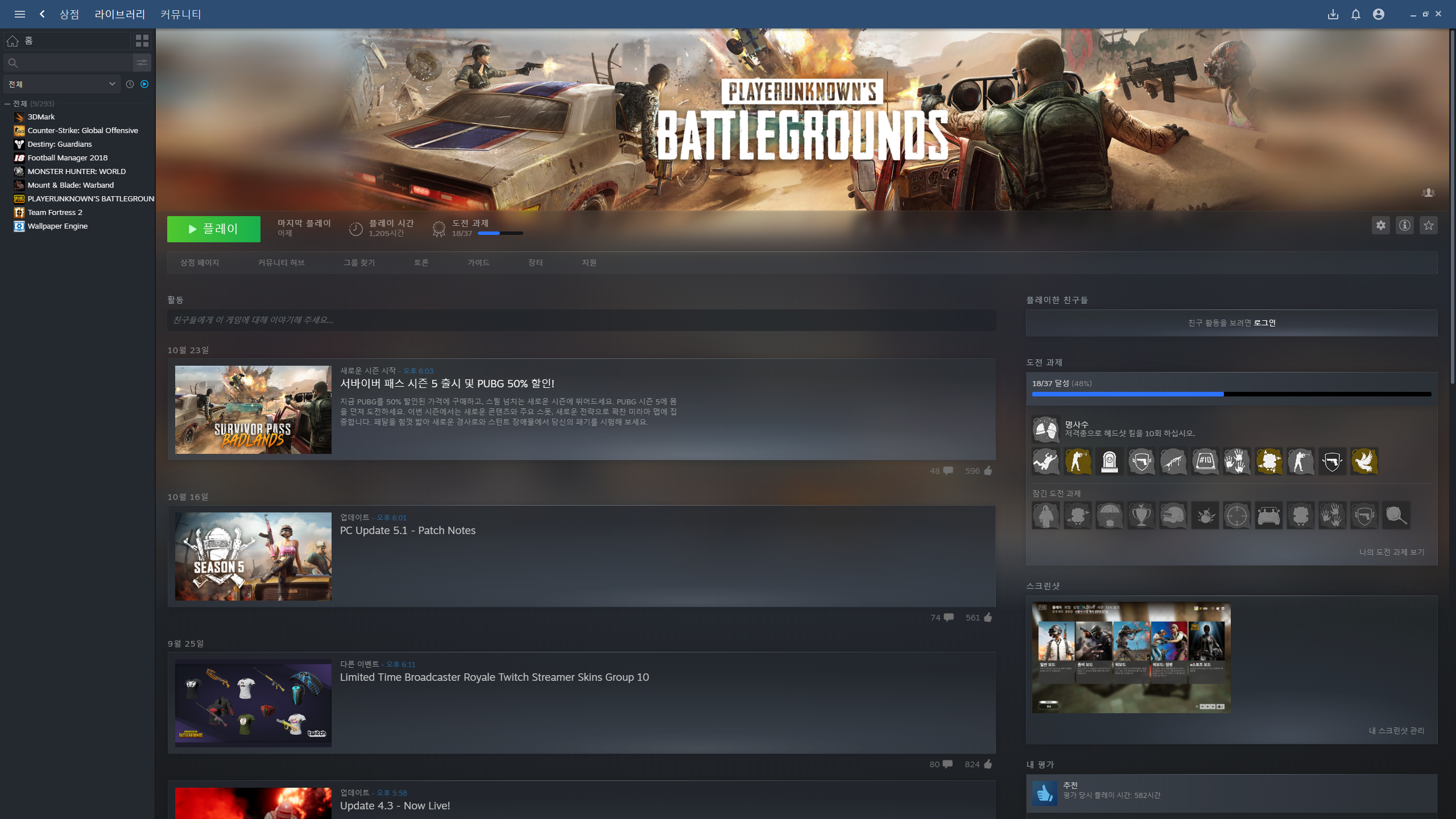 도전과제는 조금더 직관적으로 바뀌었고, 게임별 트레이딩 카드의 레벨의 진행상황을 한눈에 볼 수 있게 되었습니다.