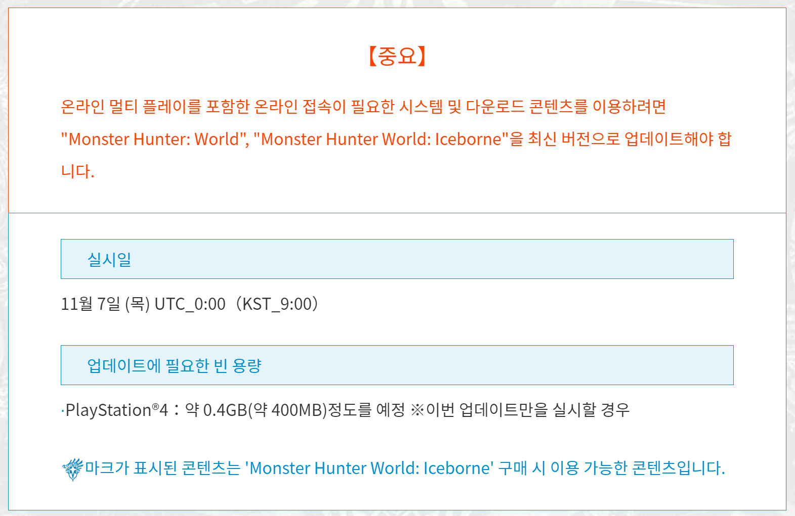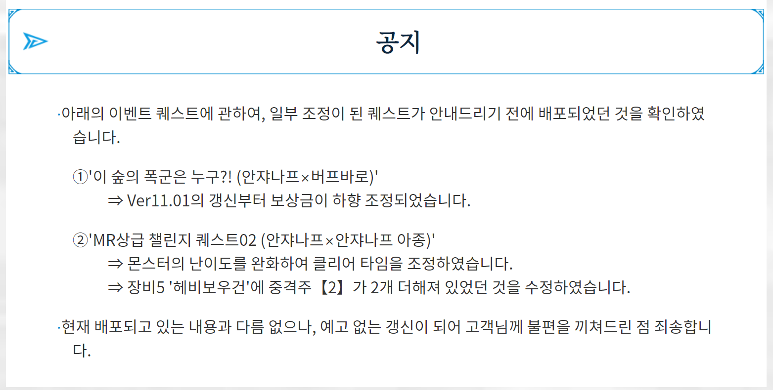 레지던트 이블 2(바이오 하자드) 콜라보 퀘스트는 11월 8일 오전 9시 부터 배포입니다.