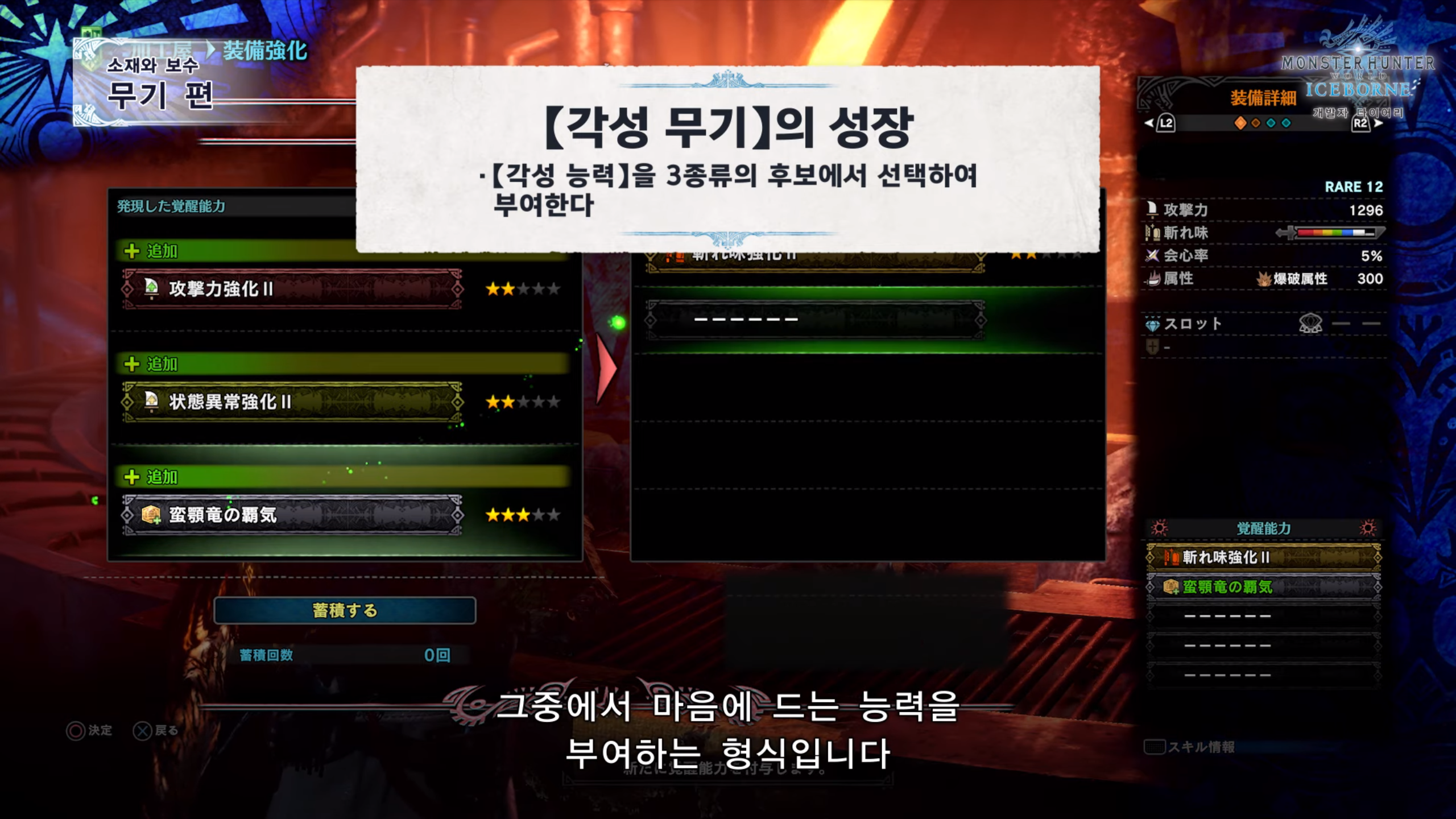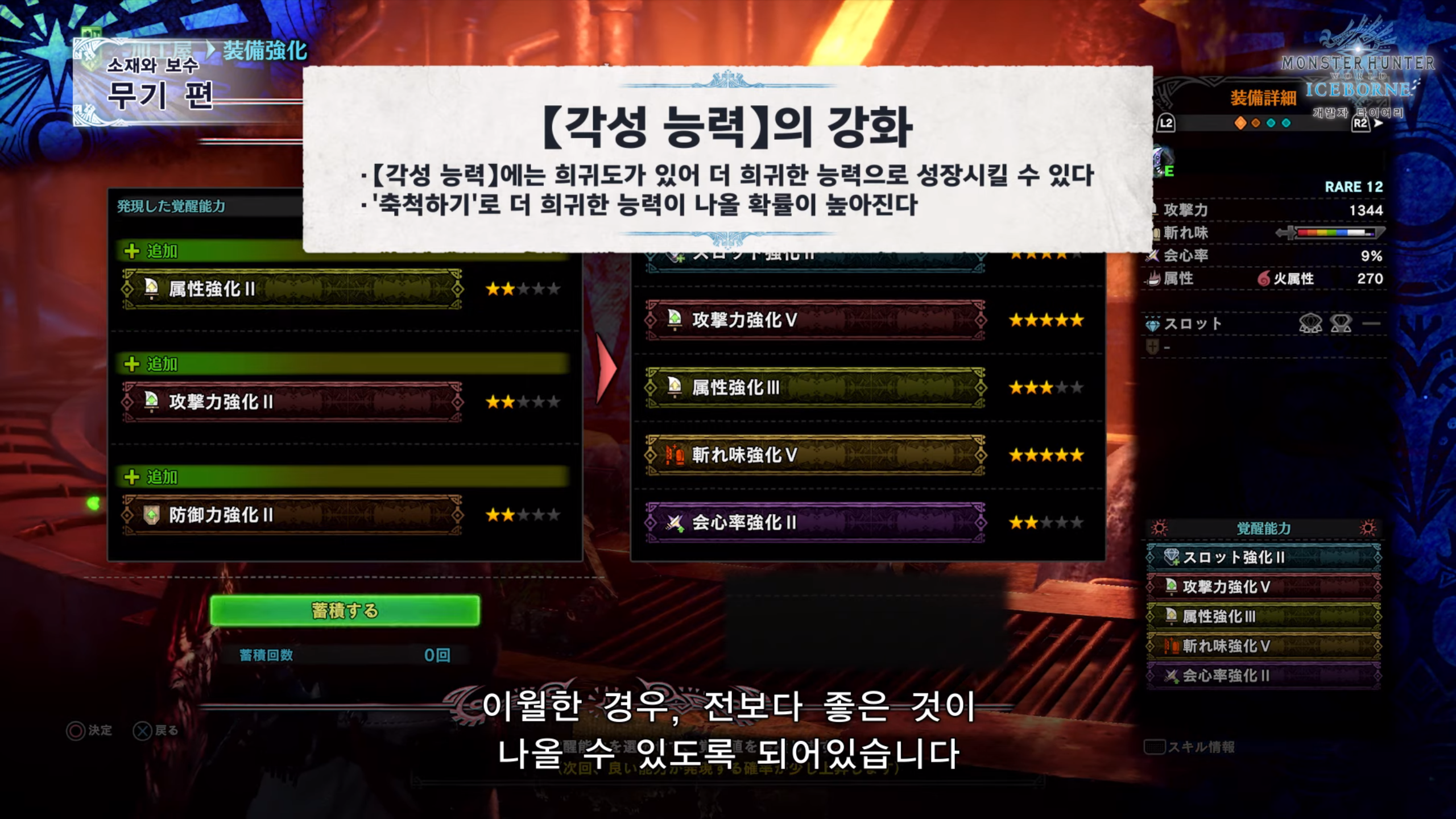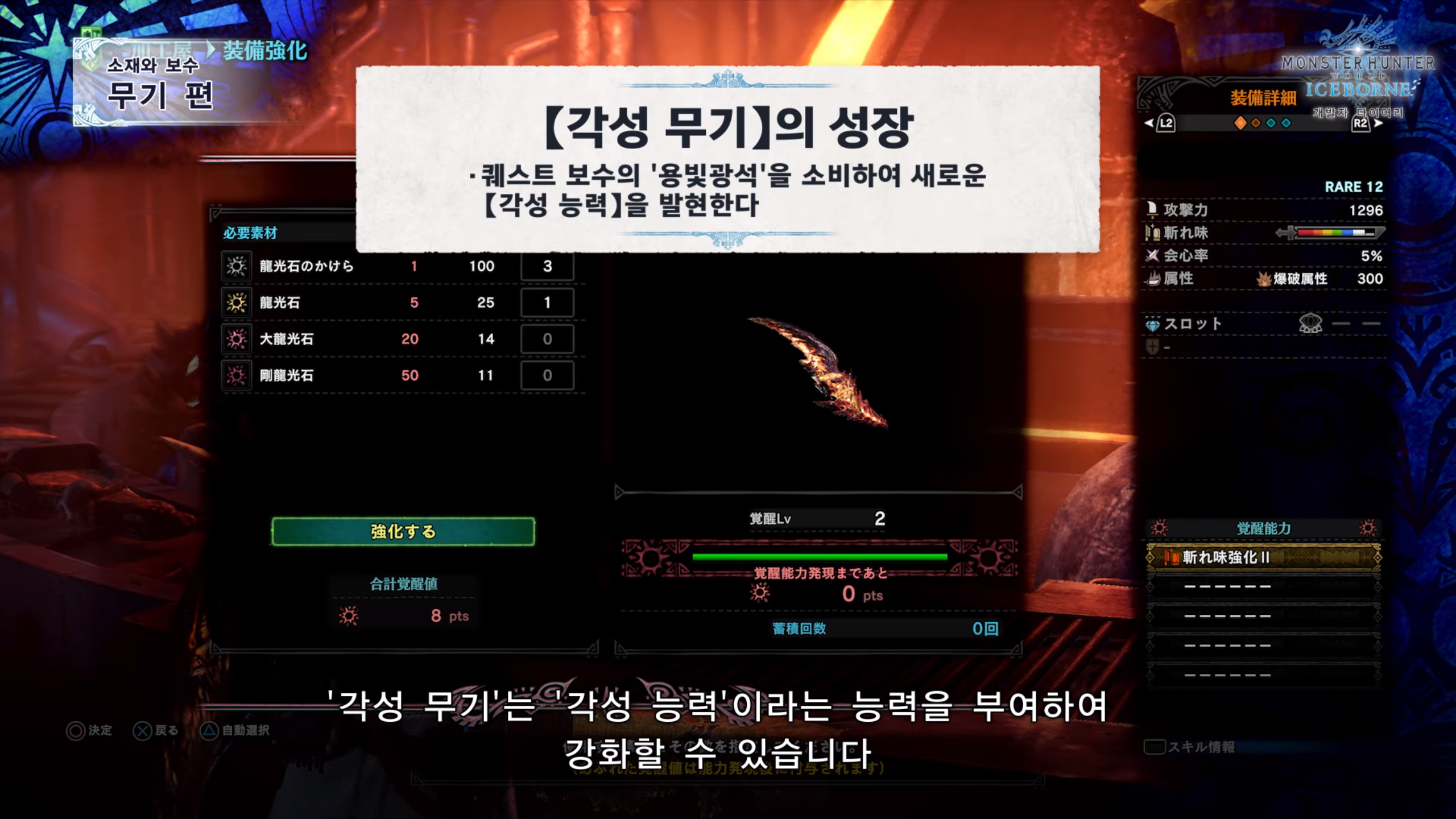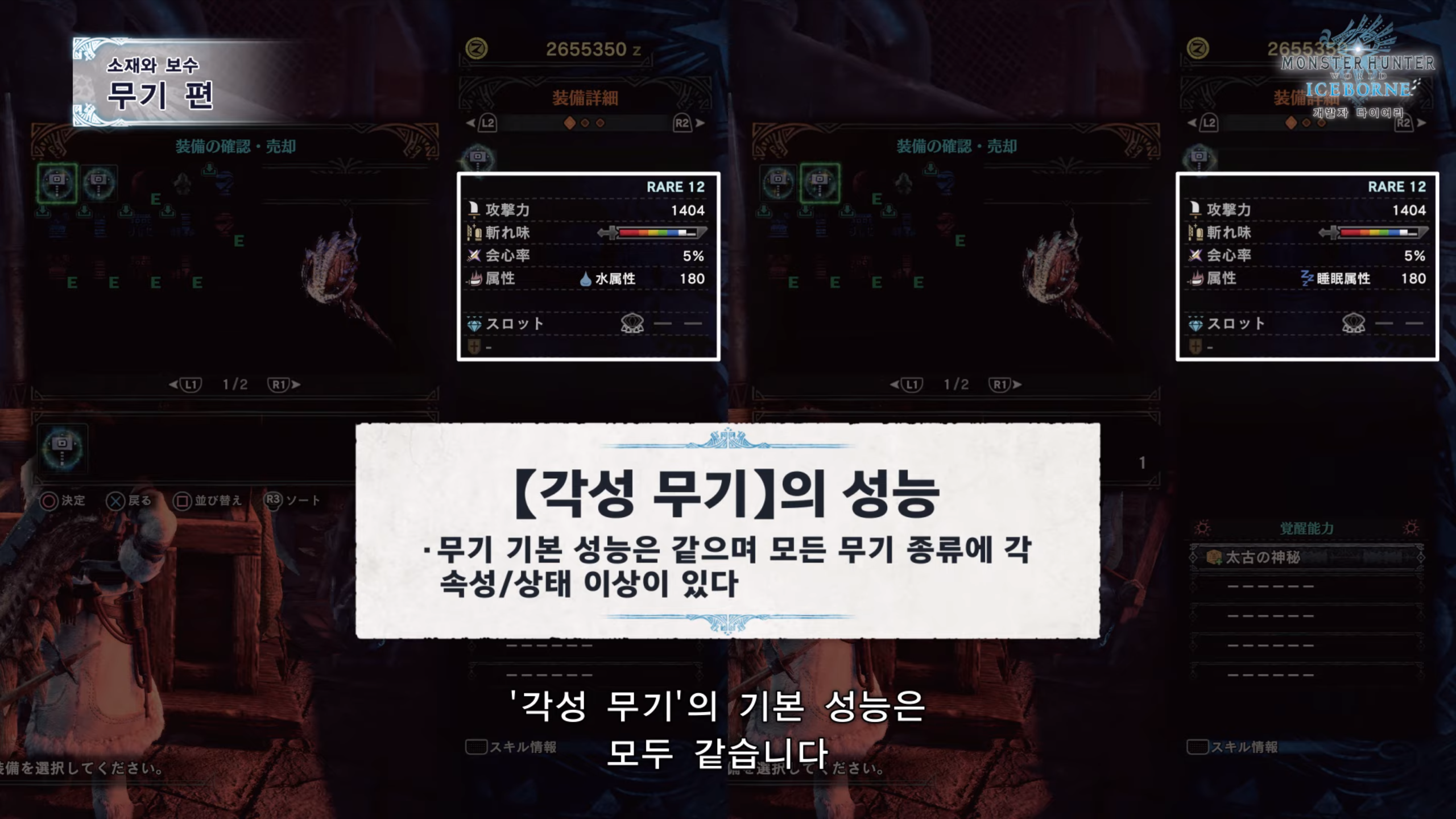 - 각성 무기는 기본 무기와 성능은 동일하나 속성과 상태이상치가 틀리다.