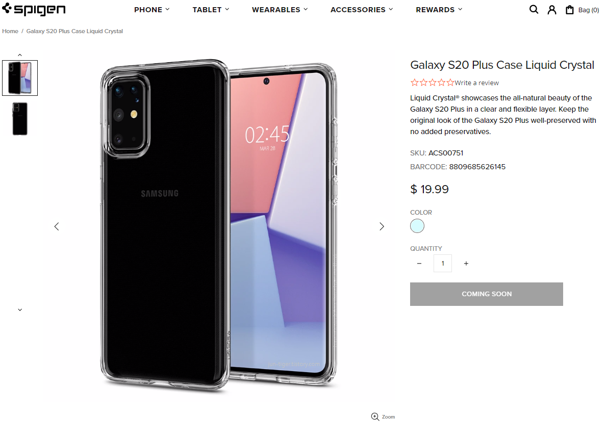 스마트폰의 케이스 제조사로 유명한 슈피켄의 홈페이지에서 갤럭시 S20 플러스 케이스가 유출되었습니다.