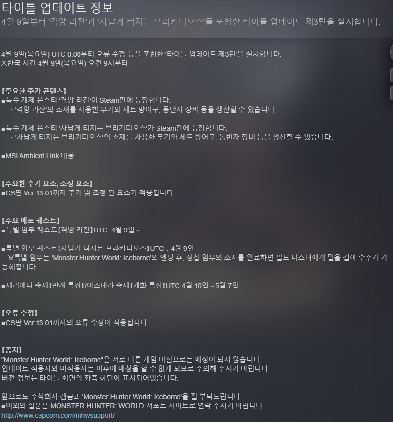 이번 타이틀 업데이트 이후 콘솔 버전과 업데이트 주기를 같이합니다.
