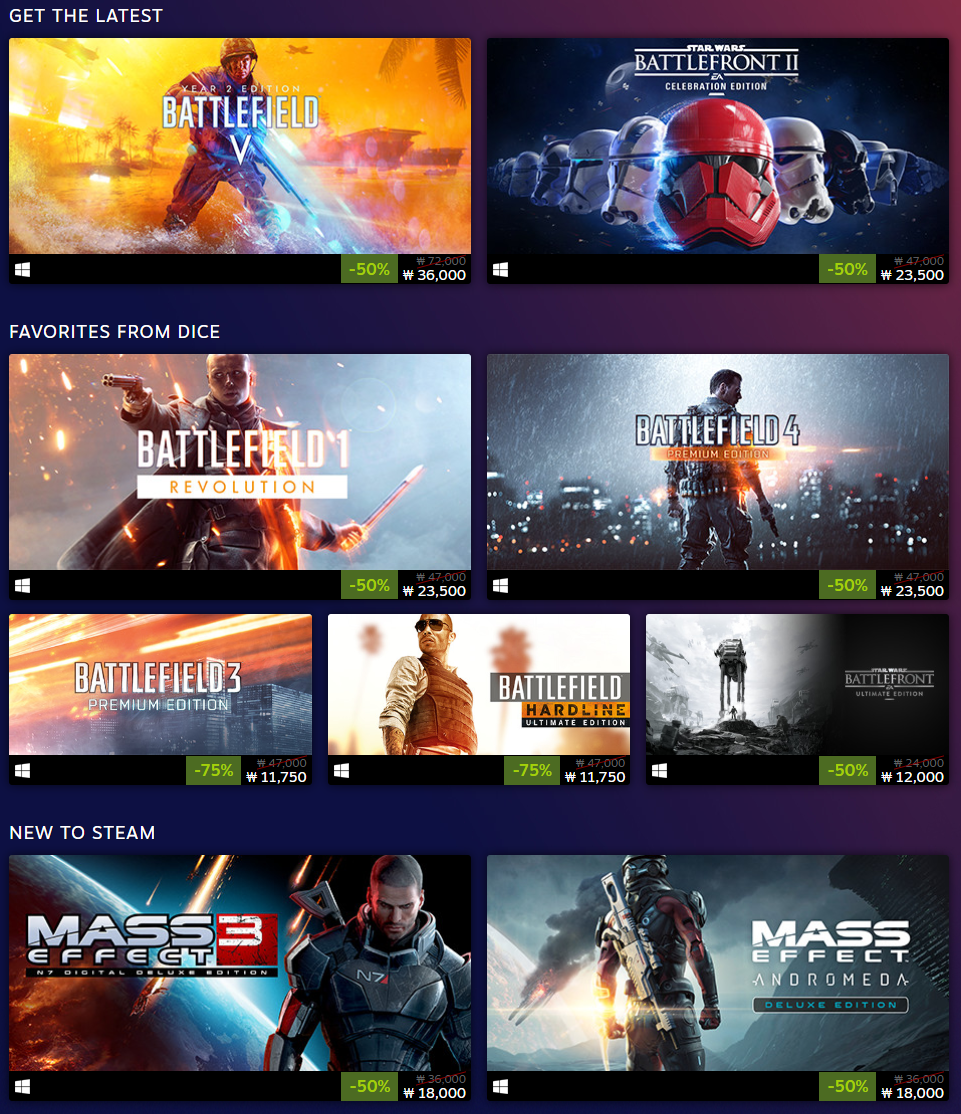 앞서 복귀한 게임 이후에 배틀필드및 니드포 스피드를 포함한 EA의 프랜차이즈 다수가 스팀에 다시 합류했습니다.