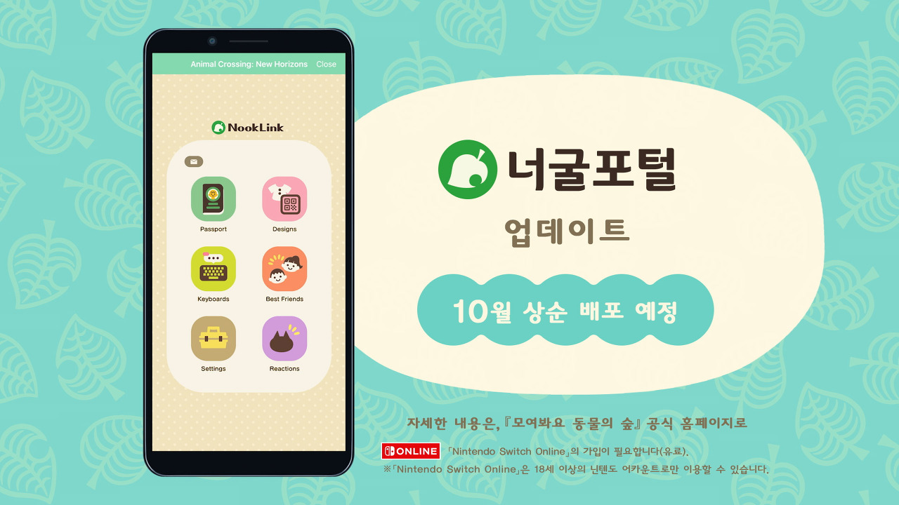 스마트폰용 어플 Nintendo Switch Online에서 이용할 수 있는 「너굴포털」이 10월 상순에 업데이트 예정입니다.