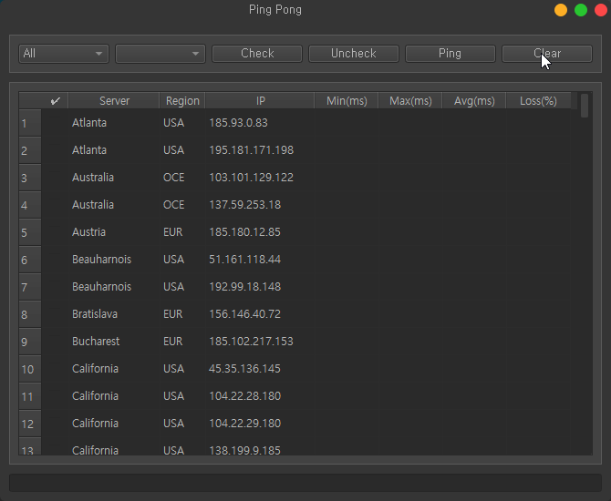 - 핑 결과는 평균 핑 시간을 기준으로 자동으로 정렬됩니다.