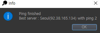 - 그리고 모든 핑이 완료되면 메시지 상자에 최상의 핑 시간 결과가 표시됩니다.